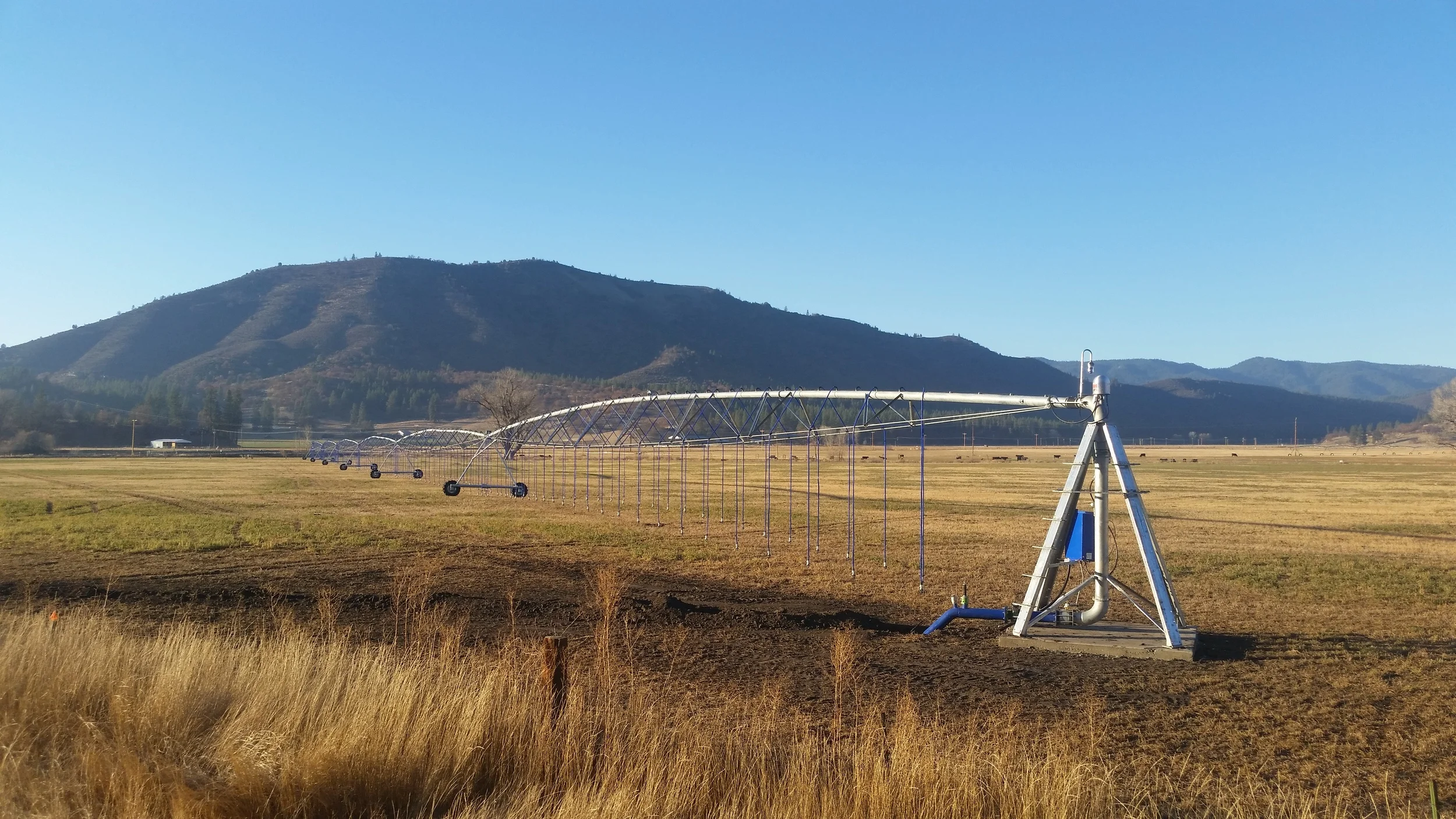 InterMountain Ag offers retrofit services for older, less efficient pivots. One of the highest operating costs and uncertainties facing farmers today is irrigating crops. InterMountain Ag's Low Elevation Spray Application (LESA) packages can provide benefits that will have a huge benefit on your bottom line. University testing in the Northwest has shown that irrigation efficiency increases by over 10% when converting from the current methods used in Northern California and Southern Oregon. This means that by irrigating under the crop's canopy more water ends up in the soil and less is lost due to factors such as evaporation and wind. These systems also allow for an approximately 25 psi drop in system pressure which translates into substantial pump energy savings. These systems generally have a low payback period and are easy to maintain. Contact InterMountain Ag to discuss your application and see how much a LESA system can save you.